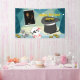 El banner de Escenario de espectáculo de magia Feliz cumpleaños Nombre Azul hace un telón de fondo maravilloso para el buffet de cumpleaños.