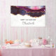 Banner de cumpleaños con un diseño abstracto con capas azules y violetas con cintas de Relieve metalizado de oro falsas en el medio.