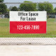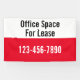 Este cartel exterior es rojo brillante, negro y blanco. Puede editar el texto para satisfacer sus necesidades. Puede editar el texto de la parte superior para mostrar el texto de su personalizado (mostrado: Espacio de oficina para alquiler) La mitad superior es blanca con texto negro. La mitad inferior es rojo brillante con texto blanco para tu número de teléfono.