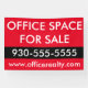Banner al aire libre profesional de Office Space for Sale Real Estate, rojo y blanco, que se puede personalizar con tu número de teléfono o sitio web. Gran agencia inmobiliaria, producto promocional y herramienta de marketing para cada negocio inmobiliario e inversor. Para cualquiera que quiera vender inmuebles comerciales y espacio de oficinas.