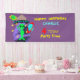 Un lindo banner de cumpleaños feliz para todos esos niños que tienen una fiesta de cumpleaños temática en el Espacio Ultraterrestre. Una imagen divertida de planetas, estrellas, barcos espaciales, y un lindo extraterrestre verde. No te olvides de cambiar el nombre, la edad y el mensaje aquí no tiene coste adicional.