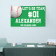 Saluda a tu equipo con este cartel del equipo de béisbol blanco verde. Personaliza con el número y nombre de tu atleta, y el nombre del equipo. Incluso puede cambiar el mensaje. Muestra tu espíritu de equipo este verano.
