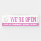 Ayuda a animar a los clientes a volver a su negocio de belleza con este banner de publicidad comercial de belleza y salud para informar a los clientes que están abiertos. Simple y audaz banner rosa y blanco silencioso. Lecturas ¡Estamos abiertos! Disfruta del 20% de descuento en cualquier tratamiento de belleza este mes, o personaliza con su propio logotipo de negocio llamada a la acción e información del cliente y nombre de negocio. El color de fondo se puede cambiar para que se adapte a los colores de su negocio. Ideal para volver a generar tráfico en el salón de belleza u otro comercio minorista o de belleza. Personalizar con su propio logotipo cuadrado, nombre comercial y detalles de los mensajes promocionales. Diseñado por www.mylittleeden.com