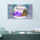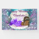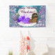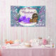 Estandarte de cumpleaños de sirena afroamericana con una adorable princesa sirena bebé afroamericana étnica en un caparazón de perla bonito con perlas y joyas en un fondo morado y azul turquesa bajo el mar. Puedes personalizar fácilmente este estandarte de cumpleaños de sirena para tu evento agregando el texto que desees. Este es un diseño impreso sin purpurina real, perlas, joyas, etc.