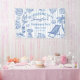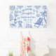 Este estandarte da un ambiente divertido de playa, mostrando rayas de alfiler azules de acuarela y elementos de playa. Este es un estandarte que marca el tono para una fiesta divertida.