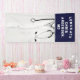 Estandarte de felicitaciones por la graduación de la facultad de medicina para médico con bata de laboratorio y estetoscopio. Para personalizar, edite el texto para agregar el nombre y las credenciales del médico.