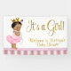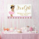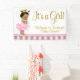 Estandarte para baby shower de princesa afroamericana con adorable princesa étnica bebé que lleva un tutú rosa fruncido y collar de perlas sobre un fondo elegante rosa y dorado. Este estandarte de princesa para baby shower rosa y dorado se personaliza fácilmente para tu evento simplemente agregando el texto que desees. Puedes eliminar el gráfico de 'es una niña' o moverlo según sea necesario. También puedes cambiar el color de fondo a lo que prefieras.