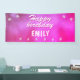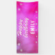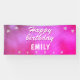 Estrella Metálica Rosa Cute Girly Happy Birthday Banner. El diseño tiene estrellas en un fondo rosado intenso y metálico púrpura. ¡Agrega tu nombre.