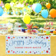 Lona Estrellas arcoiris en Sky Blue Feliz cumpleaños a