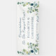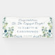Banner de felicitaciones perfectas para un compromiso boda, temática elegante y moderna de eucalipto verde. Hermosas hojas de eucalipto de acuarela. Diseño de felicitaciones con estilo de escritura moderna con nombres de monograma. Perfecto para fiestas de compromiso o recepciones de boda.