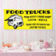 Gran cartel publicitario de Food Trucks. La pancarta es perfecta para hacer saber a la comunidad que sale y apoya su evento Food Truck. El diseño cuenta con un camión de comida blanco y negro. Ideal para promocionar tu camión de comida o evento de camiones de comida.