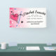 Un corazón de hilo con gancho de crochet y chispas falsas en esta artesanía muestran banner para mostrar una pared o mesa, personalizado con tu texto, fuentes y esquema de color.