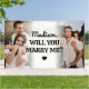 Extra large "Will you marry me?" banner featuring 2 photos and grommets to hang it outside (indoor option available too). Personalized it and add a name to create a memorable moment they'll never forget. Perfect for a sweet surprise or a big reveal.