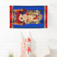Pancarta de la ducha del bebé príncipe con adorable cabello claro príncipe rubio vestido con pañal azul real y corona dorada en un trono real rojo y dorado adornado en un fondo rojo, azul real y oro. Añade tu propio texto para personalizar este cartel de prince baby ducha en el estilo de letra y color de tu elección para personalizar tu evento. Puedes mover y redimensionar el trono y el bebé según sea necesario para tu texto.