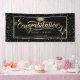 Elegante gorra de graduado purpurina de oro, confetti de oro sobre fondo negro.