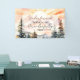 Boho and rustic Christian gender-neutral first birthday design based on psalm 139 "Fearfully and Wonderfully Made" with a watercolor-style landscape with mountains, fir trees, and a rising sun.