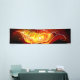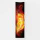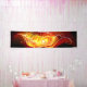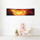 Una brillante pluma de pavo real hecha de fuego y llama sobre fondo negro.