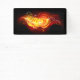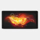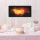 Una brillante pluma de pavo real hecha de fuego y llama sobre fondo negro.