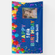 Feliz 18° cumpleaños, Coloridos globos Pancartas de fotos azules de Confetti. Para una mayor personalización, haga clic en el botón "Personalizar" y utilice nuestra herramienta de diseño para modificar esta plantilla.