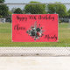 Haz una declaración con nuestro "Feliz cumpleaños número 50", Banner al aire libre de Rosas rojos y negros en un fondo rojo que presenta un diseño elegante y una construcción duradera con grommets, ¡es la manera perfecta de celebrar con estilo en tu evento! Este diseño está monogramado para que cambies el mensaje y la celebración del cumpleaños.