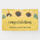 Felicidades para la maravillosa pareja que acaba de comprometerse en matrimonio. Hermosos girasoles en acuarela con tipografía de letra script moderna. El banner de felicitación perfecto para la celebración de tu fiesta. Diseño floral rústico de color amarillo dorado. Monogramado con nombres.