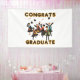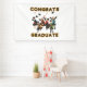 Este diseño de pancarta presenta las palabras "Felicidades Graduado" con fuente de letra Studly más letras de color gris con contorno amarillo que muestra a los estudiantes celebrando después de una graduación en este tema de educación. Esta pancarta tiene impresión de un solo lado, medidas de seguridad para exteriores 6 "x10", hecha con un acabado mate elegante y es resistente a la decoloración y desgarro para uso en interiores o exteriores, excelente para anunciar cualquier cosa, desde cumpleaños hasta graduaciones, bodas y aniversarios. Bordes doblados y soldados térmicamente para un acabado limpio, las pancartas para exteriores se pueden comprar con ojales metálicos.