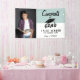 Estandarte de Felicidades Graduado Foto Azul Fiesta de Graduación. Celebra a tu graduado con este increíble estandarte con una foto. Estandarte de fiesta de graduación con gorro de graduación, texto Felicidades Graduado, nombre del graduado, nombre de la escuela y Clase de - personaliza con tus datos. Fondo blanco y azul. Crea tu propio estandarte de fiesta de graduación.