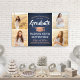 Añada un toque personalizado a las decoraciones de la fiesta de graduación de la universidad o la escuela secundaria con este cartel de color azul marino, cobre y blanco del personalizado 4. (IMAGEN PLACEMENT TIP: Una manera fácil de centrar una foto exactamente como quieres es recortarla antes de subirla al sitio web de Zazzle.) El diseño presenta un fondo oscuro azul, una falsa placa de mortero de Relieve metalizado, una tipografía moderna y elegante, caligrafía de escritura a mano y cuatro fotos del graduado, como imágenes de la ceremonia de graduación o imágenes de la ceremonia de graduación. Tenga en cuenta que el cobre es color impreso, no Relieve metalizado metálico. Este cartel fiesta es una manera elegante de celebrar el día especial. ¡Felicitaciones al graduado!