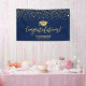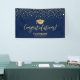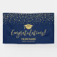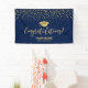 Celebra tu día especial con esta elegante pancarta de graduación. El diseño de esta pancarta presenta tipografía dorada chic "¡Felicidades!" y una gorra de graduación en un fondo azul marino. Puedes personalizar el texto y la foto. Más suministros para fiestas y papelería están disponibles en mi tienda BaraBomDesign.