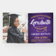 Añada un toque personalizado a las decoraciones de la fiesta de graduación de la universidad o la escuela secundaria con este cartel de foto personalizado morado, dorado y blanco. El diseño presenta un fondo morado, una tipografía moderna y elegante, caligrafía de escritura a mano y una imagen del graduado, como una foto de la graduación o una imagen de la ceremonia de graduación. Tenga en cuenta que el oro es de color amarillo impreso, no Relieve metalizado metálico. Este cartel fiesta es una manera elegante de celebrar el día especial. ¡Felicitaciones al graduado!
