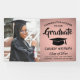 Añada un toque elegante y personalizado a las decoraciones de la fiesta de graduación de la universidad o de la escuela secundaria con este cartel de foto personalizado rosa y negro. El diseño presenta un fondo de Relieve metalizado metálico de moda en oro rosa, tipografía moderna y elegante, caligrafía de escritura a mano y una imagen del graduado, como una foto de la graduación o imagen de la ceremonia de graduación. Este cartel fiesta es una manera elegante de celebrar el día especial. ¡Felicitaciones al graduado!