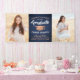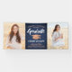 Añada un toque personalizado a las decoraciones de la fiesta de graduación de la universidad con este cartel de fotos de personalizados azul marino, cobre y blanco. El diseño presenta un fondo oscuro azul oscuro, una tapa falsa de la placa de mortero de Relieve metalizado, una tipografía moderna y elegante, caligrafía de escritura a mano y 2 fotos del graduado, como imágenes de la ceremonia de graduación o imágenes de la ceremonia de graduación. Tenga en cuenta que el cobre es color impreso, no Relieve metalizado metálico. Este cartel fiesta es una manera elegante de celebrar el día especial. ¡Felicitaciones al graduado!