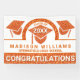Fácil de personalizar, este banner de la fiesta de graduación personalizado incluye un diseño falso de tapón purpurina naranja y tassel y cinco plantillas de texto para una decoración fiesta de lo más amable. Este banner de FELICITACIONES naranjas y blancas tiene espacio para el año de graduación en el mortero más grande, el nombre de tu graduado, la escuela secundaria y felicitaciones con letras blancas en negrita con una oscura sombra de naranja oxidado en un falso borde purpurina en la parte inferior. Desde el diseño de semicírculo en la parte superior flanqueado por dos falsos tapones de graduación de purpurinas en naranja al texto de su personalizado, este banner personalizado de la fiesta de graduación mejorará la decoración de su celebración única.
