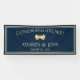 Un banner de felicitaciones a la boda de Navy y y Gold Elegant Wedding para sus accesorios de recepción diseñados con texto dorado, bordes y corazones decorativos sobre un fondo marino clásico. Para personalizar con la fecha de Boda y los nombres de las novias, simplemente inserte su texto en nuestra plantilla sencilla, reemplazando el ejemplo. No olvide ver la colección completa de Bodas Navy y y Gold Elegant Wedding para encontrar artículos de papelería y accesorios a juego.