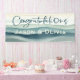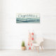 Banner moderno de olas acuáticas en la playa con un diseño sencillo y elegante, perfecto para bodas, celebraciones y eventos especiales. Personalizada con un nombre monogramado, esta decoración fiesta de inspiración costera le da un toque único a sus felicitaciones y decoración de celebración. Tipografía elegante,