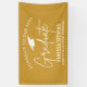 Banner moderno de graduación con letras en negrita y blanco con antecedentes de ORO. El diseño presenta un tapón blanco de graduación con la frase "Felicitaciones a nuestro graduado". Personalice el cartel de graduación de GOLD agregando el nombre del graduado, el nombre de la escuela y el año de graduación. Para obtener un aspecto más personalizado, cambie el fondo a los colores de la escuela. ¡El poster de graduación es perfecto para su fiesta de bachillerato o de graduación universitaria!