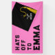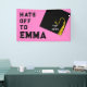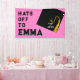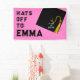 Banner de felicitaciones creativas por graduación con una gorra negra y dorada en un fondo rosado. Para personalizar el texto de edición al año y el nombre y el año de clase superior.