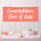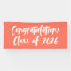 Banner moderno de graduación con "Felicitaciones Clase de 2025" en un guión de pincel blanco con fondo de coral o color de su elección. El cartel de graduación de coral está diseñado para coordinar con nuestra colección de graduación de Brushstrokes Resumen.