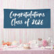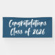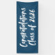 Banner moderno de graduación con "Felicitaciones Clase de 2025" en un guión de pincel blanco con un fondo marino o color de su elección. El banner de graduación de la marina está diseñado para coordinar con nuestra colección de graduación de Brushstrokes Resumen.