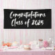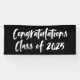 Banner moderno de graduación con "Felicitaciones Clase de 2025" en un guión de pincel blanco con un fondo negro o color de su elección. El cartel de graduación en blanco y negro está diseñado para coordinar con nuestra colección de graduación de Brushstrokes Resumen.