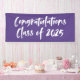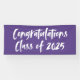Banner moderno de graduación con "Felicitaciones Clase de 2025" en un guión de pincel blanco con un fondo morado o color de su elección. El cartel de graduación morado está diseñado para coordinar con nuestra colección de graduación de Brushstrokes Resumen.