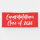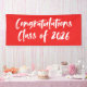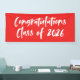 Banner moderno de graduación con "Felicitaciones Clase de 2025" en un guión de pincel blanco con un fondo rojo o color de su elección. El cartel rojo de graduación está diseñado para coordinar con nuestra colección de graduación de Brushstrokes Resumen.