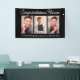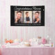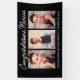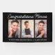 Banner negro de la fiesta de graduación de 3 fotos para el graduado de secundaria o universitario. El texto dice: "Felicitaciones". Personalice con el nombre, el nombre de la escuela y el año de graduación del graduado. El color de fondo se puede cambiar para que coincida con los colores de la escuela. Comuníquese conmigo para obtener ayuda con sus personalizaciones o para solicitar productos adicionales de correspondencias o coordinación de Zazzle para su fiesta.
