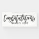 Añada un nombre o nombres a este cartel de fiesta minimalista en blanco y negro, con la palabra "Felicitaciones" en un guión escrito a mano a la moda, combinado con el texto en un tipo de letra simple y moderno.