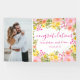 Celebre el amor con estilo con este elegante letrero de Felicitaciones, perfecto para fiestas de despedida de soltera, compromisos o recepciones de boda. El diseño presenta una foto personalizable de la pareja en un lado, junto con un borde floral de acuarela exuberante en rosa, amarillo y verde en el otro. La fuente de escritura juguetona pero refinada añade un toque romántico, lo que la convierte en una pieza llamativa para dar la bienvenida a los invitados o como parte de un fondo para fotos. ¡Una hermosa manera de resaltar el momento especial de la pareja!