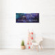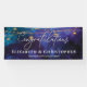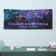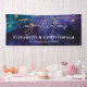 Banner elegante y moderno de enhorabuena a los bodas por la recién comprometida pareja. Desee a su pareja feliz una cita inspiradora "Que tu amor crezca siempre" u otro mensaje personal. Monograma con los nombres de las parejas para crear tu propio cartel de fiesta. ¡Perfecto para fiestas de boda! La elegante pancarta incluye modernos tragaluces con fondo azul acuático y estrellas. Texto de felicitaciones al estilo tipográfico.