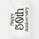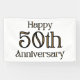 Esta pancarta presenta las palabras "Feliz 50 Aniversario" en una fuente de impresión única con letras doradas y contorno negro. Esta pancarta tiene impresión en un solo lado, medidas seguras para exteriores de 3 "x5", está hecha con un acabado mate elegante y es resistente tanto a la decoloración como al desgarro para uso en interiores o exteriores, ideal para anunciar cualquier cosa, desde cumpleaños hasta graduaciones, bodas y aniversarios. Bordes doblados y soldados térmicamente para un acabado limpio, las pancartas para exteriores se pueden comprar con ojetes metálicos.