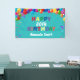 Feliz 80° cumpleaños Coloridos globos Confetti Verde azulado Aqua Turquoise Banner. Para una mayor personalización, haga clic en el botón "Personalizar" y utilice nuestra herramienta de diseño para modificar esta plantilla.