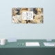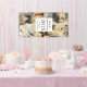 Una elegante pancarta de Año Nuevo 2025, personalizada con sus nombres, que incluye 2 escenas fiestas con una bola disco dorada y copas de champán, una máscara y zapatos de baile. Una acuarela en tonos dorados, purpurinas, negros y blancos. Un estilo moderno y dinámico para su celebración.