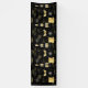 Esta pancarta muestra las palabras "Feliz Año Nuevo" en una fuente de impresión única y elegante con letras de color dorado, más fuegos artificiales, confeti, máscara, sombreros y formas y patrones de copas de champán en este tema y estilo de Año Nuevo. Esta pancarta tiene medidas de impresión seguras para exteriores de un solo lado de 2,5 "x8" hechas con un acabado mate elegante y es resistente a la decoloración y al desgarro para uso en interiores o exteriores, excelente para anunciar cualquier cosa, desde cumpleaños hasta graduaciones, bodas y aniversarios. Bordes doblados y soldados térmicamente para un acabado limpio. Las pancartas exteriores se pueden comprar con ojetes metálicos.
